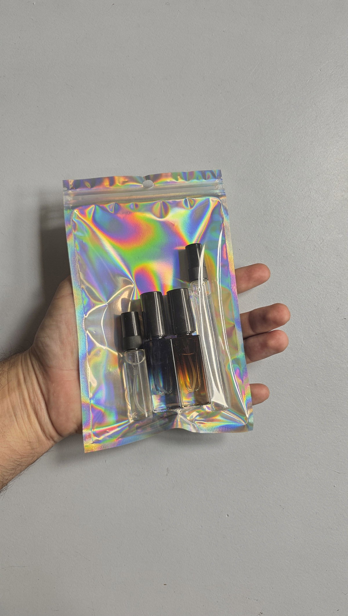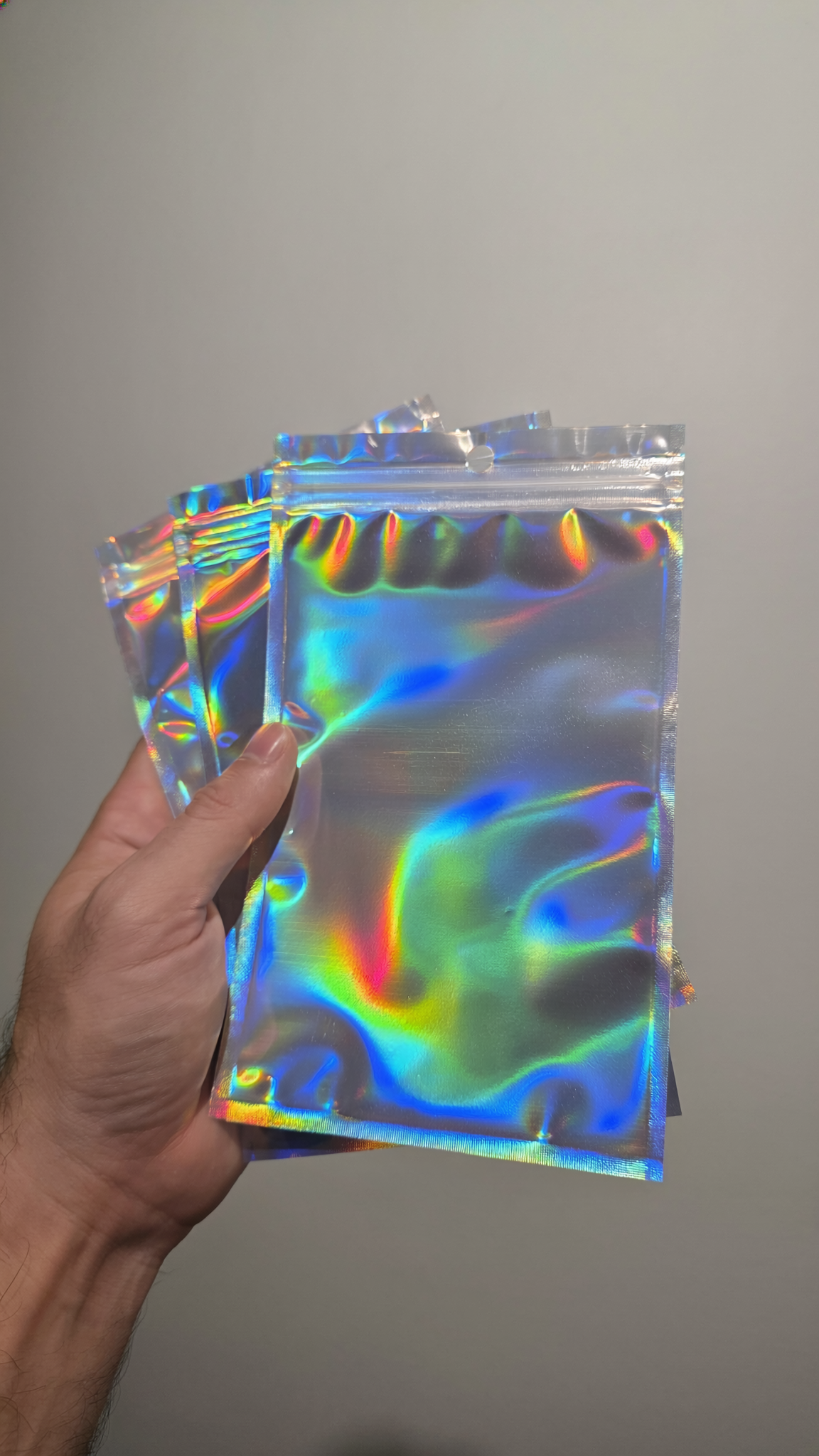 Bolsa holográfica con cierre zip que protege el pedido brindando una experiencia visual única.